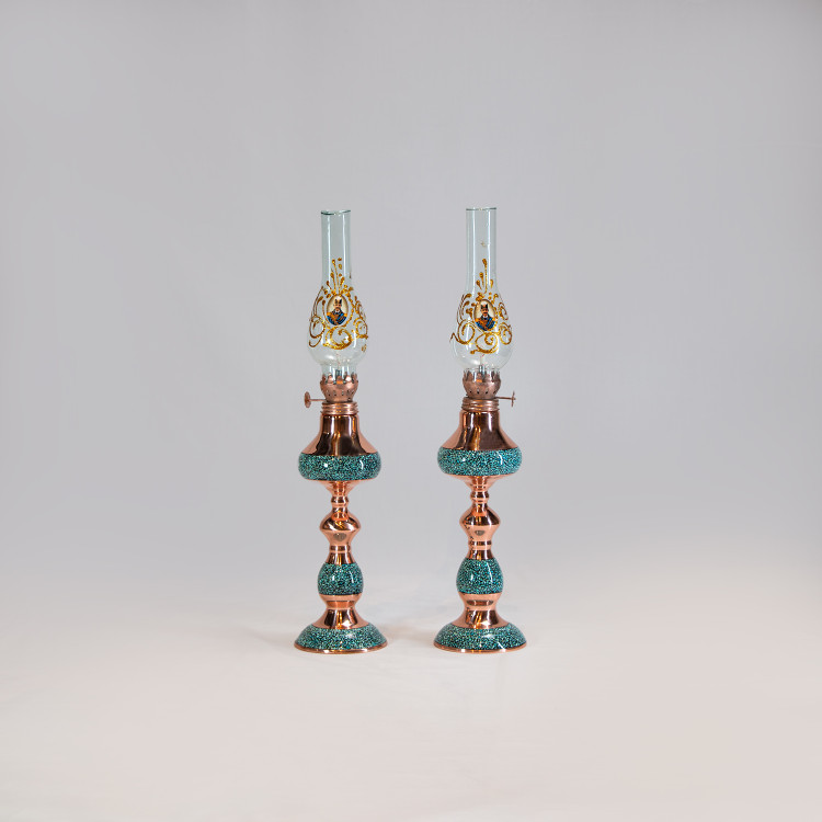جفت چراغ نفتی فیروزهکوب سایز 20 – نور و هنر ناب ایرانی