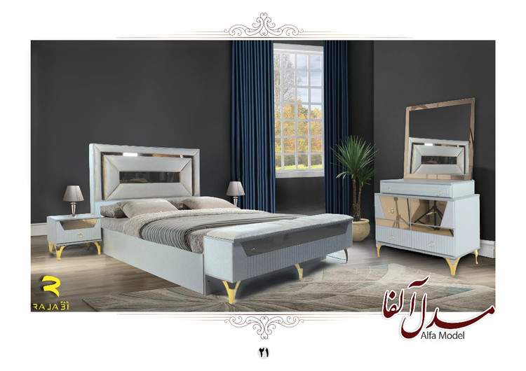 سرویس خواب آلفا ترکیبی از زیبایی مدرن و کیفیت ساخت بالاست که با طراحی نئوکلاسیک، جلوهای لوکس و آرامشبخش به اتاق خواب شما میبخشد. این سرویس شامل تخت دو نفره با تاج لمسهدار، دو پاتختی، میز آرایش با آینه و فایل کشویی است.