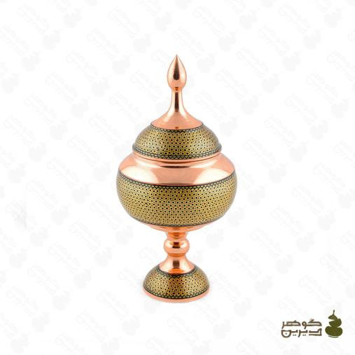 شکلاتخوری مس خاتمکاری سایز ۳۰ تلفیقی از هنر اصیل ایرانی و کاربردی بودن در دکوراسیون منزل است. این محصول با دقت و ظرافت تمام طراحی و ساخته شده و هر میز را به فضایی هنری و دلنشین تبدیل میکند.